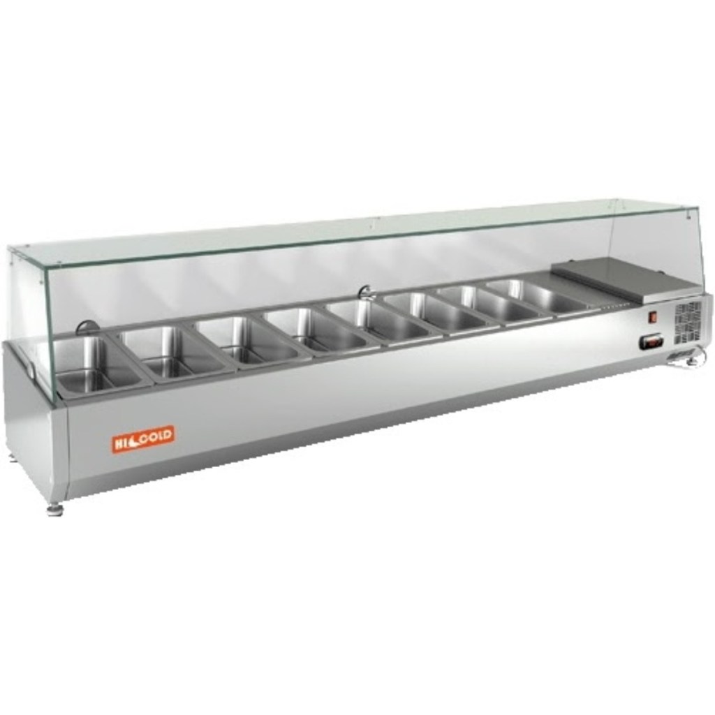 Каталог оборудования Холодильное оборудованиеВитрины для ингредиентовВитрина холодильная для ингредиентов HICOLD VRTG 1835 1/4 Витрина холодильная для ингредиентов HICOLD VRTG 1835 1/4 Код товара: 064-454 Поделиться: WhatsAppTelegram СравнитьДобавить в КПВ избранное 0 68 031 ₽ В корзину 0 шт Под заказСамовывоз сегодня бесплатно Взять в кредит Купить в лизинг Получить консультацию в WhatsApp Описание Характеристики Отзывы 0 Инструкции 2 Витрина холодильная для ингредиентов HICOLD VRTG 1835 1/4 предназначена для охлаждения, кратковременного хранения и наглядной демонстрации ингредиентов, салатов и готовых блюд на предприятиях общественного питания и в торговых точках. Гастроёмкости в комплект не входят, приобретаются отдельно. Основные особенности: Корпус выполнен из нержавеющей стали, обеспечивая долговечность и легкость в уходе; Электронная панель управления для точной настройки температуры; Модель с надстройкой из стекла (исполнение G) для удобной демонстрации продуктов; Высота витрины — 225 мм, высота стеклянной надстройки — 205 мм; Вместимость: 8 гастроёмкостей GN1/4; Опорные ножки для устойчивой установки на столешнице. HICOLD VRTG 1835 1/4 — компактная и функциональная настольная витрина, идеально подходящая для демонстрации и кратковременного хранения продуктов на профессиональной кухне или в торговой зоне. Изображение товара, представленного на фото, может отличаться от его фактического вида. Показать все Габаритные размеры1835×325×459 ммДиапазон рабочей температурыот +2 до +7 °CДлина1835 ммГлубина325 ммВысота459 ммТип крышкиСтеклянная Гастроемкостей8 штТип гастроемкостейGN1/4 Мощность150 ВтНапряжение220 ВТип охлажденияСтатическое Материал изготовленияНержавеющая сталь ХладагентR134 Мощность0,15 кВтВес нетто 55 кгВес брутто102 кгТип оттайкиРучная Габариты в упаковке2030×590×550 ммБрендHicold Оставить отзыв Еще никто не оставил отзыв на этот товар Инструкция на HICOLD VRTG 1835.pdfДекларация о соответствии.pdf Похожие товары Перейти в каталог Под заказ 53 040 ₽ Витрина холодильная для ингредиентов TEFCOLD VK33-180 С этим товаром покупают В наличии 83 719 ₽ Шкаф холодильный МХМ Капри 0,7М Ранее просмотрено В наличии 53 559 ₽ Витрина холодильная для ингредиентов HICOLD VRTU 1390 1/3