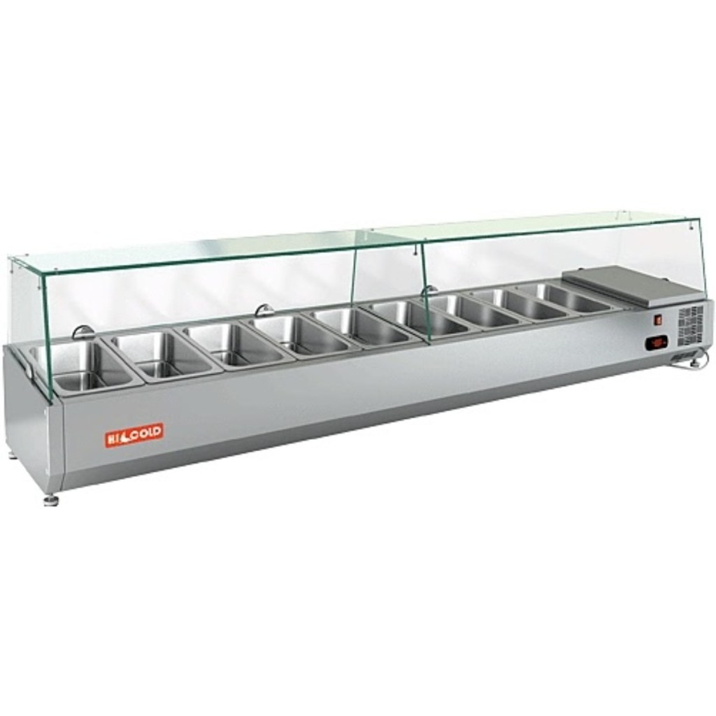 Каталог оборудования Холодильное оборудованиеВитрины для ингредиентовВитрина холодильная для ингредиентов HICOLD VRTG 1970 к PZ3 (1/4) Витрина холодильная для ингредиентов HICOLD VRTG 1970 к PZ3 (1/4) Код товара: 064-660 Поделиться: WhatsAppTelegram СравнитьДобавить в КПВ избранное 0 69 274 ₽ В корзину 0 шт Под заказСамовывоз сегодня бесплатно Взять в кредит Купить в лизинг Получить консультацию в WhatsApp Описание Характеристики Отзывы 0 Инструкции 3 Витрина холодильная для ингредиентов HICOLD VRTG 1970 к PZ3 (1/4) предназначена для охлаждения, кратковременного хранения и демонстрации ингредиентов, салатов и готовых блюд на предприятиях общественного питания и торговли. Устанавливается на холодильные столы для пиццы серии PZE3 благодаря встроенным креплениям в нижней части корпуса. На фото показана аналогичная модель с настольной установкой. Ключевые особенности: Корпус из нержавеющей стали — долговечность, простота ухода. Электронная панель управления — точная регулировка температуры. Исполнение G — стеклянная надстройка для удобного обзора продуктов. Высота витрины — 459 мм — компактное размещение на рабочей поверхности. Вместимость: 9 x GN1/4 — рациональная организация хранения (гастроёмкости приобретаются отдельно). Совместимые модели столов: PZE3-1111/SN, PZE3-1111/GN HICOLD VRTG 1970 к PZ3 (1/4) — это профессиональная настольная витрина, которая сочетает компактные размеры, современное управление и высокое качество охлаждения. Отличный выбор для пиццерий, ресторанов и кафе, где важны удобство доступа, скорость работы и эффектная подача продуктов.Изображение товара, представленного на фото, может отличаться от его фактического вида. Показать все Габаритные размеры1970×325×459 ммДиапазон рабочей температурыот +2 до +7 °CДлина1970 ммГлубина325 ммВысота459 ммТип крышкиСтеклянная Гастроемкостей9 штТип гастроемкостейGN1/4 Мощность150 ВтНапряжение220 ВТип охлажденияСтатическое Материал изготовленияНержавеющая сталь ХладагентR134 Мощность0,15 кВтВес нетто25 кгВес брутто71 кгТип оттайкиРучная Габариты в упаковке2100×540×580 ммБрендHicold Оставить отзыв Еще никто не оставил отзыв на этот товар Инструкция на HICOLD VRTG 1970 к PZ3.pdfСхема установки на стол.jpgДекларация о соответствии.pdf Похожие товары Перейти в каталог Под заказ Цена по запросу Витрина для ингредиентов Polair VT2-G (1/3) открытого типа В наличии 72 104 ₽ Витрина холодильная для ингредиентов TEFCOLD VK33-120 С этим товаром покупают В наличии 79 865 ₽ Стол морозильный Cooleq SS45BT В наличии 12 637 ₽ Льдогенератор HURAKAN HKN-IMF12M В наличии 63 865 ₽ Шкаф холодильный МХМ Капри 0,5М Ранее просмотрено Под заказ 67 761 ₽ Витрина холодильная для ингредиентов HICOLD VRTG 1835 к PZ3 (1/4)