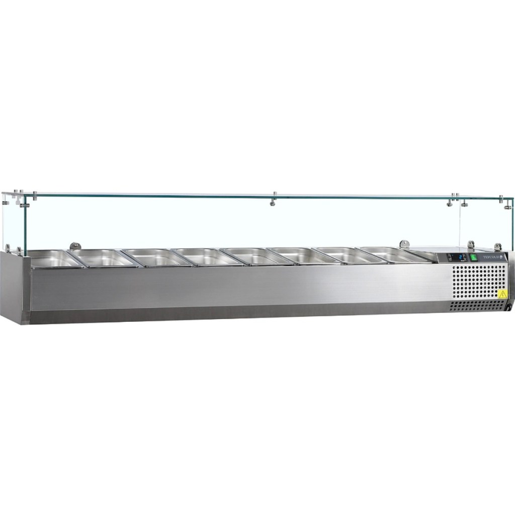 Каталог оборудования Холодильное оборудованиеВитрины для ингредиентовВитрина холодильная для ингредиентов TEFCOLD VK33-180 Витрина холодильная для ингредиентов TEFCOLD VK33-180 Код товара: 010-383 Поделиться: WhatsAppTelegram СравнитьДобавить в КПВ избранное 0 101 613 ₽ В корзину 0 шт Под заказСамовывоз сегодня бесплатно Взять в кредит Купить в лизинг Получить консультацию в Max Описание Характеристики Отзывы 0 Витрина холодильная для ингредиентов TEFCOLD VK33-180 предназначена для кратковременного хранения и демонстрации готовых салатов, мясных и рыбных закусок, а также ингредиентов на предприятиях общественного питания и торговли. Корпус и внутренняя обшивка выполнены из нержавеющей стали, обеспечивая долговечность и простоту очистки. Гастроемкости в комплект не входят. Особенности: Статическое охлаждение — равномерное поддержание температуры, подходит для деликатных продуктов. Механическое размораживание — надежное удаление наледи без вмешательства пользователя. Хладагент R600a — экологичный и энергоэффективный. Электронный термостат и градусник — точная настройка и контроль температуры. Гнутый стеклянный колпак — обеспечивает обзор продукции и защиту от внешних воздействий. Регулируемые ножки — удобная установка и устойчивость на неровной поверхности. Климатический класс 4 — работа при температуре окружающей среды до +32°C. Вместимость — 8×GN 1/4 глубиной 150 мм, удобно для салатов и закусок. Перегородки — 7 длинных и 1 короткая для удобного разделения продуктов. Уровень шума: 47 дБ — почти бесшумная работа. Хладагент: 0,04 кг — эффективное охлаждение при минимальном расходе. Внутренние размеры: 1445×245×155 мм — компактное размещение емкостей. TEFCOLD VK33-180 — компактная и надежная витрина для демонстрации и кратковременного хранения продуктов с безопасным поддержанием температуры.Изображение товара, представленного на фото, может отличаться от его фактического вида. Показать все Габаритные размеры1880×355×434 ммДиапазон рабочей температурыот +2 до +10 °CДлина1800 ммГлубина355 ммВысота434 ммТип крышкиСтеклянная Гастроемкостей8 штТип гастроемкостейGN 1/4 Мощность0,112 ВтНапряжение220 ВТип охлажденияСтатическое Уровень шума47 дБКлиматический класс4 ХладагентR600a Вес нетто53 кгВес брутто58 кгТип оттайкиРучная Габариты в упаковке1880x380x310 ммБрендTefcold Оставить отзыв Еще никто не оставил отзыв на этот товар Похожие товары Перейти в каталог В наличии 58 095 ₽ Витрина холодильная для ингредиентов HICOLD VRTU 1835 1/3 В наличии 70 407 ₽ Витрина холодильная для ингредиентов HICOLD VRX 1800 1/3 С этим товаром покупают В наличии 115 508 ₽ Стол морозильный низкотемпературный Polair TB2GN-G В наличии 157 579 ₽ Льдогенератор кубикового типа Abat ЛГ-37/15К-01 Под заказ 134 084 ₽ Шкаф холодильный Abat ШХс-0,7-03 нерж.