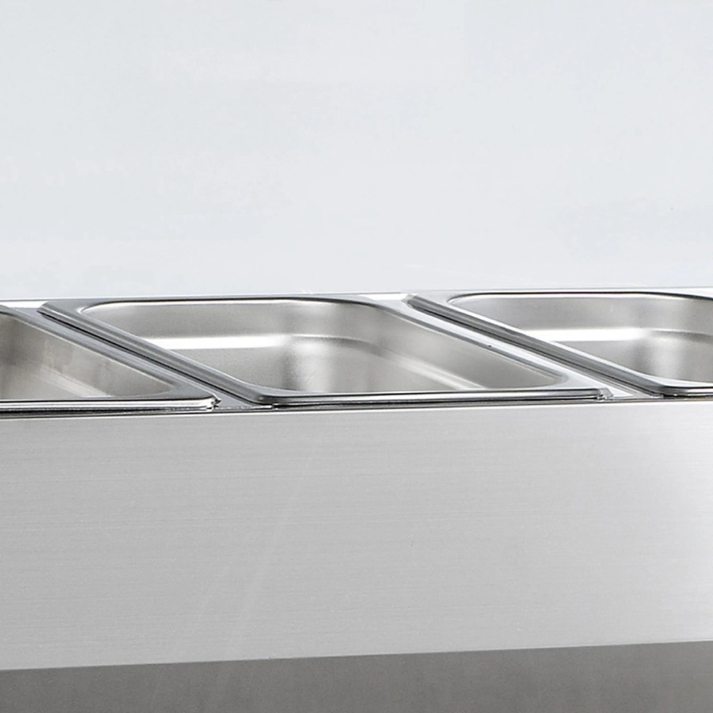 Каталог оборудования Холодильное оборудованиеВитрины для ингредиентовВитрина холодильная для ингредиентов TEFCOLD VK38-120 Витрина холодильная для ингредиентов TEFCOLD VK38-120 Код товара: 010-384 Поделиться: WhatsAppTelegram СравнитьДобавить в КПВ избранное 0 82 699 ₽ В корзину 0 шт Под заказСамовывоз сегодня бесплатно Взять в кредит Купить в лизинг Получить консультацию в Max Описание Характеристики Отзывы 0 Витрина холодильная для ингредиентов TEFCOLD VK38-120 предназначена для кратковременного хранения и демонстрации готовых салатов, мясных и рыбных закусок, а также ингредиентов на предприятиях общественного питания и торговли. Корпус и внутренняя обшивка выполнены из нержавеющей стали, что обеспечивает долговечность и легкость очистки. Гастроемкости в комплект не входят. Особенности: Статическое охлаждение — равномерное поддержание температуры для деликатных продуктов. Механическое размораживание — надежное удаление наледи без вмешательства пользователя. Хладагент R600a — экологичный и энергоэффективный. Электронный термостат и градусник — точная настройка и контроль температуры. Гнутый стеклянный колпак — обеспечивает обзор продукции и защиту от внешних воздействий. Регулируемые ножки — удобная установка и устойчивость на неровной поверхности. Климатический класс 4 — работа при температуре окружающей среды до +32°C. Вместимость — 4×GN 1/3 глубиной 150 мм, удобно для салатов и закусок. Перегородки — 3 длинных и 4 коротких для удобного разделения продуктов. Уровень шума — 47 дБ, почти бесшумная работа. Хладагент — 0,04 кг, эффективное охлаждение при минимальном расходе. Внутренние размеры — 845×305×155 мм, компактное размещение емкостей. TEFCOLD VK38-120 — компактная и надежная витрина для демонстрации и кратковременного хранения продуктов с безопасным поддержанием температурыИзображение товара, представленного на фото, может отличаться от его фактического вида. Показать все Габаритные размеры1200×395×435 ммДиапазон рабочей температурыот +2 до +10 °CДлина1200 ммГлубина395 ммВысота435 ммТип крышкиСтеклянная Гастроемкостей4 штТип гастроемкостейGN 1/3 Мощность0,112 ВтНапряжение220 ВТип охлажденияСтатическое Уровень шума47 дБКлиматический класс4 ХладагентR600a Вес нетто40 кгВес брутто45 кгТип оттайкиРучная Габариты в упаковке1280×440×310 ммБрендTefcold Оставить отзыв Еще никто не оставил отзыв на этот товар Похожие товары Перейти в каталог Под заказ Цена по запросу Витрина для ингредиентов Polair VT2-G (1/3) открытого типа Под заказ 60 350 ₽ Витрина для ингредиентов Polair VT2v-G (1/3) с подсветкой и защитным колпаком С этим товаром покупают В наличии 99 023 ₽ Стол холодильный среднетемпературный Polair ТМ2GN-G В наличии 161 242 ₽ Льдогенератор ICEMAKE ND 50 AS Под заказ 142 619 ₽ Шкаф холодильный МХМ Капри 1,5М нержавейка Ранее просмотрено В наличии 171 215 ₽ Фризер для мороженого HURAKAN HKN-BQ66FPS В наличии 126 379 ₽ Фризер для мороженого HURAKAN HKN-BQ58P В наличии 308 575 ₽ Сплит-система холодильная низкотемпературная Intercold LCM 434 FT (опция -30° С) Под заказ 147 362 ₽ Стол морозильный Abat СХН-70-01 без борта (дверь, дверь) Под заказ 171 333 ₽ Бонета морозильная МХМ Рица ВХНо-2,5/1,5 Под заказ 125 790 ₽ Шкаф холодильный Abat ШХ-0,7