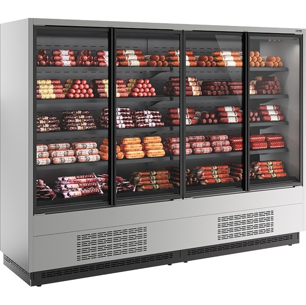 Горка холодильная Carboma FC20-07 VV 2,5-1 0030 STANDARD фронт X1 (версия 2.0) (9006-9005) (бок металл с зеркалом) применяется в предприятиях общественного питания и торговли для эффективного охлаждения, кратковременного хранения и предпродажной демонстрации напитков, мясных и птицеводческих продуктов, полуфабрикатов, молочной и гастрономической продукции.