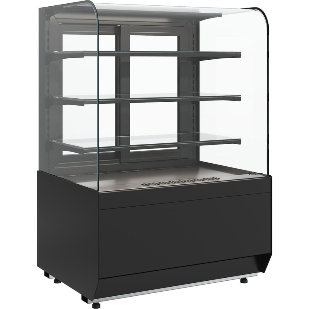 Carboma KR70 VM 0,9-1 Light (9005) — это современная и стильная кондитерская витрина, сочетающая высокую функциональность с привлекательным дизайном. Её безрамное радиусное остекление, качественное охлаждение и продуманная организация пространства делают её идеальным выбором для презентации десертов и выпечки в заведениях с высоким стандартом обслуживания и визуальной подачи.