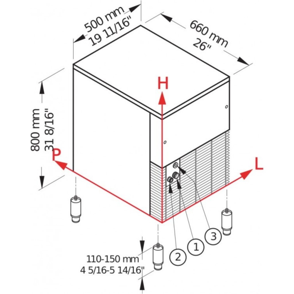 Корпус из нержавеющей стали AISI 304 с отделкой Scotch Brite устойчив к износу и коррозии, а гладкие скругленные внутренние поверхности облегчают очистку и поддержание гигиены. Модель обеспечивает производительность до 95 кг льда в сутки, что позволяет эффективно работать даже при высокой загрузке.