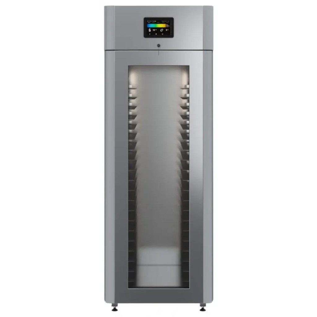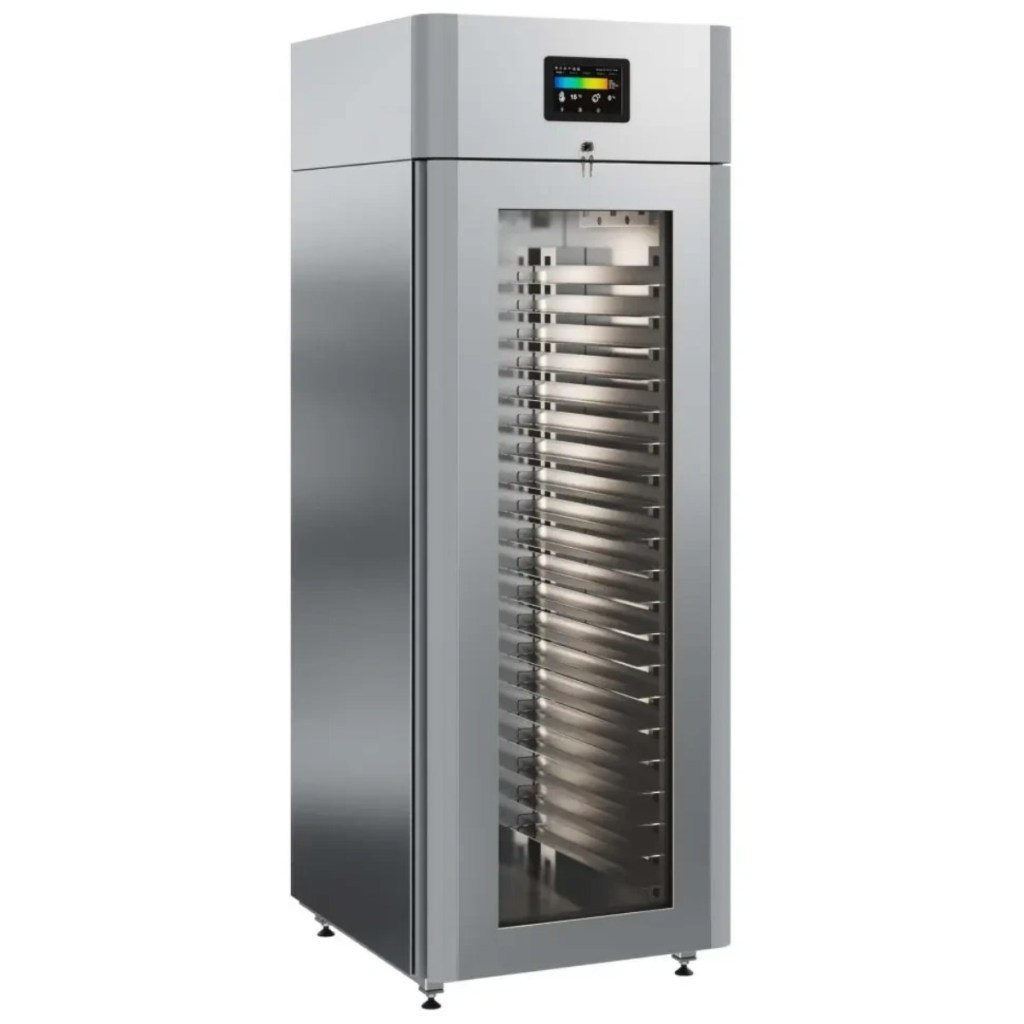 Каталог оборудования Холодильное оборудованиеШкафы холодильныеСпециализированные холодильные шкафыШкаф холодильный для хлебопекарных производств Polair CS107-Bakery Br со стеклом (Тип 1) Шкаф холодильный для хлебопекарных производств Polair CS107-Bakery Br со стеклом (Тип 1) Код товара: 062-622 Поделиться: WhatsAppTelegram СравнитьДобавить в КПВ избранное 0 414 545 ₽ В корзину 0 шт Под заказСамовывоз сегодня бесплатно Взять в кредит Купить в лизинг Получить консультацию в WhatsApp Описание Характеристики Отзывы 0 Инструкции 5 Шкаф холодильный для хлебопекарных производств Polair CS107-Bakery Br со стеклом (Тип 1) предназначен для создания оптимальных условий хранения и расстойки заготовок из теста на предприятиях общественного питания и торговли. Цельнозаливной корпус выполнен из нержавеющей стали, дверь — стеклопакет. Оборудование стабильно работает при температуре окружающей среды до +40 °C. В комплект входят 20 пар направляющих размером 400×600 мм. Особенности: Широкий функционал: охлаждение, замедление ферментации, хранение, регенерация, брожение и расстойка Динамическое охлаждение с мягким обдувом без заветривания и автоматическая оттайка с системой испарения конденсата Панель управления с 5" дисплеем: контроль температуры, влажности (регулируется от 60 до 95 %), скорости вентилятора и времени, а также возможность создания и сохранения программ Встроенный ультразвуковой увлажнитель (необходима система водоочистки и канализация) Эргономичная конструкция: верхнее расположение агрегата, распашная дверь со стеклопакетом, механизм самозакрывания, педаль для открытия, съёмные направляющие и легко заменяемый уплотнитель с магнитной вставкой Дополнительная защита: пластиковый бордюр по периметру камеры для предотвращения повреждений от тележек Простота ухода: штампованное углубление в дне корпуса для сбора загрязнений Экологичный хладагент R290 и энергоэффективность: потребляемая мощность — 0,55 кВт (охлаждение), 0,9 кВт (нагрев) Толщина стенки корпуса — 43 мм Polair CS107-Bakery Br со стеклом (Тип 1) — надёжный и многофункциональный шкаф, который обеспечивает полное управление процессами брожения и расстойки теста. Современная система охлаждения и увлажнения, продуманная конструкция и удобное управление делают его оптимальным решением для пекарен и кондитерских, стремящихся к стабильному качеству и высокой производительности.Изображение товара, представленного на фото, может отличаться от его фактического вида. Показать все Габаритные размеры697×1005×1960 ммДиапазон рабочей температурыот -10 до +40 °CДлина697 ммШирина1005 ммВысота1960 ммОбъём700 лКол-во дверей1 Тип двериСтеклянная Уровень влажностиот 60 до 95 %Направляющие под EN 40*6020 Расстояние между направляющими60 ммХолодильный агрегатВстроенный Тип оттайкиАвтоматическая Тип охлажденияДинамический ПодсветкаЕсть ХладагентR290 Вес нетто180 кгБрендPolairВсе специализированные холодильные шкафы Из нержавейки Оставить отзыв Еще никто не оставил отзыв на этот товар Схема POLAIR CS107 Bakery Br.jpgИнструкция на POLAIR CS107 Bakery Br.pdfБрошюра на хлебопекарное оборудование POLAIR.pdfДекларация о соответствии.pdfСертификат соответствия.pdf Похожие товары Перейти в каталог Под заказ 397 800 ₽ Шкаф холодильный для вызревания сыра Polair CS107 Cheese полки нерж., со стеклом Под заказ 389 300 ₽ Шкаф холодильный для вызревания мяса Polair CS107 Meat (Тип 1) Под заказ 207 942 ₽ Шкаф холодильный HURAK