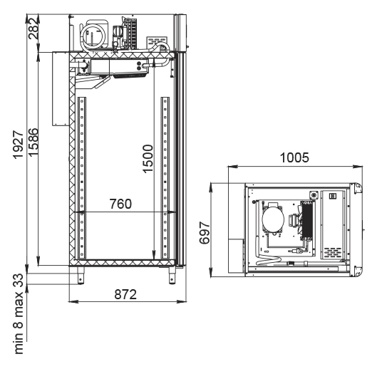 Каталог оборудования Холодильное оборудованиеШкафы холодильныеСпециализированные холодильные шкафыШкаф холодильный для вызревания сыра Polair CS107 Cheese полки нерж., со стеклом Шкаф холодильный для вызревания сыра Polair CS107 Cheese полки нерж., со стеклом Код товара: 062-630 Поделиться: WhatsAppTelegram СравнитьДобавить в КПВ избранное 0 397 800 ₽ В корзину 0 шт Под заказСамовывоз сегодня бесплатно Взять в кредит Купить в лизинг Получить консультацию в WhatsApp Описание Характеристики Отзывы 0 Инструкции 5 Шкаф холодильный для вызревания сыра Polair CS107 Cheese полки нерж., со стеклом предназначен для создания оптимальных условий хранения и дозревания твердых и полутвердых сыров на предприятиях общественного питания и торговли. Монолитный цельнозаливной корпус изготовлен из нержавеющей стали снаружи и изнутри (кроме задней стенки), что обеспечивает высокую прочность и долговечность шкафа. Дверь выполнена из стеклопакета. Оборудование рассчитано на работу при температуре окружающей среды до 40 °С. Особенности: Верхнее расположение агрегата Многофункциональная русифицированная контрольная панель с 5-дюймовым дисплеем Возможность создания и сохранения собственных программ в памяти электронного блока Четыре перфорированные полки из нержавеющей стали Встроенный ультразвуковой увлажнитель (требуется подключение к системе очищенной воды и централизованной канализации) Распашная дверь с заливной теплоизоляцией Заменяемый уплотнитель двери с магнитной вставкой Встроенная ручка для удобства открытия Отключаемая внутренняя LED-подсветка Штампованное углубление в дне корпуса для удобства очистки Педаль для бесконтактного открывания двери Регулировка уровня влажности от 60% до 95% Максимальная нагрузка на полку — 40 кг Толщина стенки корпуса — 43 мм Polair CS107 Cheese полки нерж., со стеклом — надежный и функциональный холодильный шкаф, обеспечивающий оптимальные условия для хранения и дозревания твердых и полутвердых сыров. Благодаря прочному корпусу, точному контролю температуры и влажности, а также современным технологиям увлажнения и управления, оборудование способствует сохранению качества и вкусовых характеристик продукции, повышая эффективность работы предприятий питания и торговли.Изображение товара, представленного на фото, может отличаться от его фактического вида. Показать все Габаритные размеры697×1005×1960 ммДиапазон рабочей температурыот -2 до +30 °CДлина697 ммШирина1005 ммВысота1960 ммОбъём700 лКол-во дверей1 Тип двериСтеклянная Количество полок4 штДопустимая нагрузка на полку40 кгУровень влажностиот 60 до 95 %Холодильный агрегатВстроенный Тип оттайкиАвтоматическая Тип охлажденияДинамическое ПодсветкаЕсть ХладагентR290 Вес нетто160 кгВес брутто190 кгБрендPolairВсе специализированные холодильные шкафы Из нержавейкиВсе специализированные холодильные шкафы Стеклянная дверь Оставить отзыв Еще никто не оставил отзыв на этот товар Схема POLAIR CS107 Cheese.jpgИнструкция на POLAIR CS107 Cheese.pdfБрошюра на POLAIR CS107 Cheese.pdfДекларация о соответствии.pdfСертификат соответствия.pdf Похожие товары Перейти в каталог Под заказ 252 314 ₽ Шкаф холодильный для вызревания мяса и сыра Carboma M700GN-1-G-MHC 9005 Под заказ 419 900 ₽ Шкаф холодильный для хлебопекарных производств Polair CS107-Bakery Br со стеклом (Тип 2) Под заказ 402 050 ₽ Шкаф холодильный для вызревания мяса Polair CS107 Meat со стеклом (Тип 2) Под заказ 385 050 ₽ Шкаф 