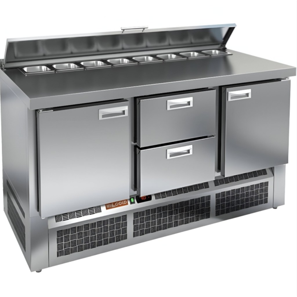 Каталог оборудования Холодильное оборудованиеСтолы охлаждаемыеСтолы холодильные для салатовСтол холодильный для салатов HiCold SLE1-121GN (1/3) М с крышкой Стол холодильный для салатов HiCold SLE1-121GN (1/3) М с крышкой Код товара: 064-918 Поделиться: WhatsAppTelegram СравнитьДобавить в КПВ избранное 0 200 691 ₽ В корзину 0 шт Под заказСамовывоз сегодня бесплатно Взять в кредит Купить в лизинг Получить консультацию в WhatsApp Описание Характеристики Отзывы 0 Инструкции 1 Стол холодильный для салатов HiCold SLE1-121GN (1/3) М с крышкой предназначен для использования на предприятиях общественного питания и торговли. Он служит для хранения и обработки ингредиентов, используемых при приготовлении салатов, пиццы, закусок и других блюд. Также стол подходит для охлаждения и кратковременного хранения скоропортящихся продуктов и напитков. Модель сочетает в себе прочную рабочую поверхность и охлаждаемый внутренний объем, что упрощает процесс приготовления: все необходимые ингредиенты всегда под рукой. Корпус и столешница изготовлены из нержавеющей стали, устойчивой к воздействию влаги, механическим повреждениям и легко поддающейся очистке. Металлическая крышка защищает продукты от загрязнений и сохраняет их свежесть. Особенности: Электронная панель управления — обеспечивает точное и удобное регулирование температуры внутри камеры. 3 глухие дверцы с автоматическими доводчиками и фиксацией — повышает удобство использования, особенно при загрузке и выгрузке продуктов. Салат-бар вмещает 8 гастроемкостей — обеспечивает быстрый доступ к разнообразным ингредиентам. Автоматические доводчики дверей с фиксатором — улучшают эргономику и предотвращают случайное захлопывание. Магнитные уплотнители — легко заменяются и обеспечивают хорошую теплоизоляцию. Открытая агрегатная часть — облегчает доступ к элементам системы охлаждения для технического обслуживания. Модификация “М” — замена ножек на колёса (2 со стопором, 2 без стопора) для мобильности стола. Максимальная глубина гастроемкостей — 100 мм — подходит для хранения различных типов продуктов. Толщина столешницы — 50 мм — обеспечивает надежность и устойчивость при работе. Высота борта — 50 мм — защищает от проливания и загрязнений. Теплоизоляция толщиной 50 мм — способствует поддержанию стабильной температуры и экономии энергии. HiCold SLE1-121GN (1/3) М с крышкой — это практичное и многофункциональное решение для профессиональной кухни. Благодаря вместительности, продуманной конструкции и надежной термоизоляции, стол позволяет организовать эффективное рабочее пространство и обеспечивает сохранность свежести продуктов в течение всего рабочего дня. Изображение товара, представленного на фото, может отличаться от его фактического вида. Показать все Габаритные размеры1485×700×850 ммДиапазон рабочей температурыот +2 до +10 °CРасположение агрегатаНижнее Материал столешницыНержавеющая Тип столаС дверьми Тип двериГлухая Объём375 лКоличество дверей3 штТип гастроемкостейGN 1/3 Размер полки530×325 ммНапряжение220 ВМощность0,2 кВтТип охлажденияДинамическое Тип оттайкиАвтоматическая СтолешницаС бортом Габариты в упаковке1700×850×1080 ммВес нетто115 кгВес брутто160 кгБрендHicold Оставить отзыв Еще никто не оставил отзыв на этот товар Декларация о соответствии.pdf Ранее просмотрено Под заказ 15 111 ₽ Ванна моечная с бортом МХМ МБ-1-0,45-0,8/0,8 (AISI 430, t=0,