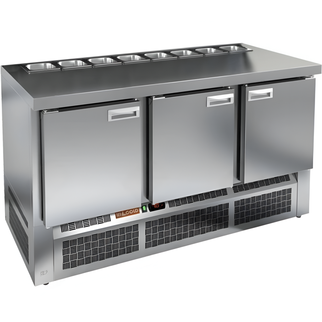 Каталог оборудования Холодильное оборудованиеСтолы охлаждаемыеСтолы холодильные для салатовСтол холодильный для салатов HiCold SLE2-111GN (1/6) О З без крышки Стол холодильный для салатов HiCold SLE2-111GN (1/6) О З без крышки Код товара: 064-868 Поделиться: WhatsAppTelegram СравнитьДобавить в КПВ избранное 0 149 302 ₽ В корзину 0 шт Под заказСамовывоз сегодня бесплатно Взять в кредит Купить в лизинг Получить консультацию в WhatsApp Описание Характеристики Отзывы 0 Инструкции 2 Стол холодильный для салатов HiCold SLE2-111GN (1/6) О З без крышки предназначен для предприятий общественного питания и торговли. Он используется для хранения, охлаждения и обработки ингредиентов, применяемых при приготовлении салатов, пиццы, закусок и других блюд. Модель объединяет удобную рабочую поверхность и охлаждаемый отсек, позволяя повару иметь все необходимое под рукой. Конструкция выполнена из прочной нержавеющей стали, устойчивой к коррозии и легкой в уходе. Особенности модели: Электронная панель управления — точная настройка температуры и контроль за режимами работы. 3 вместительные внутренние полки — рациональное распределение хранения. Салат-бар вмещает 8 гастроемкостей — оптимальная организация ингредиентов. Автоматические доводчики дверей с фиксацией в открытом положении — удобно при загрузке и выгрузке продуктов. Магнитные уплотнители — легко заменяются, обеспечивая герметичность. Открытая агрегатная часть — упрощает техническое обслуживание. Регулируемые по высоте ножки — позволяют установить оборудование на любой поверхности. Максимальная глубина гастроемкостей — 100 мм — подходит для хранения различных типов продуктов. Задняя стенка из нержавеющей стали, включая агрегатный отсек — прочность и гигиеничность. Столешница толщиной 50 мм без борта — полноценная рабочая зона. Теплоизоляция толщиной 50 мм — сохраняет стабильный температурный режим и снижает энергозатраты. HiCold SLE2-111GN (1/6) О З без крышки — это функциональный и надёжный салатный стол, сочетающий в себе удобство работы и эффективное охлаждение. Отличное решение для кухни с интенсивной нагрузкой. Изображение товара, представленного на фото, может отличаться от его фактического вида. Показать все Габаритные размеры1485×700×850 ммДиапазон рабочей температурыот +2 до +10 °CРасположение агрегатаНижнее Материал столешницыНержавеющая Тип столаС дверьми Тип двериГлухая Объём375 лКоличество дверей3 штТип гастроемкостейGN 1/6 Размер полки530×325 ммНапряжение220 ВМощность0,22 кВтТип охлажденияДинамическое Тип оттайкиАвтоматическая СтолешницаБез борта Габариты в упаковке1700×850×1080 ммВес нетто115 кгВес брутто160 кгБрендHicold Оставить отзыв Еще никто не оставил отзыв на этот товар Паспорт на HICOLD SLE2-111GN О З.pdfДекларация о соответствии.pdf Ранее просмотрено Под заказ 103 041 ₽ Стол холодильный для салатов HiCold SLE3-1GN полипропилен, без крышки