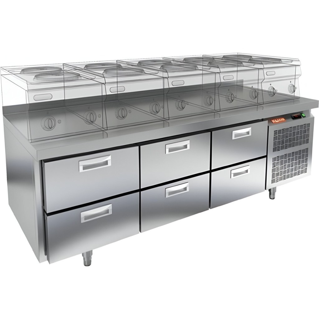 Каталог оборудования Холодильное оборудованиеСтолы охлаждаемыеСтолы холодильные под тепловое оборудованиеСтол охлаждаемый HiCold GN 222/TN LT под тепловое оборудование Стол охлаждаемый HiCold GN 222/TN LT под тепловое оборудование Код товара: 065-444 Поделиться: WhatsAppTelegram СравнитьДобавить в КПВ избранное 0 224 092 ₽ В корзину 0 шт Под заказСамовывоз сегодня бесплатно Взять в кредит Купить в лизинг Получить консультацию в WhatsApp Описание Характеристики Отзывы 0 Инструкции 2 Стол охлаждаемый HiCold GN 222/TN LT под тепловое оборудование предназначен для обработки продуктов и временного хранения скоропортящихся ингредиентов и напитков на предприятиях общественного питания и торговли. Устройство совмещает функции холодильной камеры и рабочей поверхности, что делает его особенно удобным для профессиональных кухонь. Столешница рассчитана на установку теплового оборудования: под рабочей поверхностью встроен ДСП-лист, который укрепляет конструкцию и препятствует проникновению тепла внутрь. Такое решение обеспечивает дополнительную жесткость, позволяет рационально использовать рабочее пространство и повышает эффективность работы на кухне. Особенности: 6 выдвижных ящиков обеспечивают удобный доступ к продуктам и рациональную организацию пространства Автоматические доводчики дверей с фиксатором открытого положения улучшают эргономику работы и помогают сохранить холод внутри камеры. Легкозаменяемые магнитные уплотнители способствуют герметичности и простоте технического обслуживания. Регулируемые по высоте ножки позволяют адаптировать установку под особенности помещения. Толщина столешницы — 50 мм обеспечивает надёжную опору при интенсивной эксплуатации. Высота борта — 50 мм препятствует скатыванию продуктов и инвентаря. Толщина теплоизоляции — 50 мм способствует энергоэффективности и поддержанию стабильной температуры. Температурный диапазон окружающей среды — от 12 до 37 °C, что делает оборудование универсальным в разных климатических условиях. HiCold GN 222/TN LT сочетает функциональность, надёжность и простоту в обслуживании. Идеально подходит для кухонь ресторанов, кафе и других заведений общепита, где важно одновременно эффективно хранить продукты и иметь под рукой рабочее пространство.Изображение товара, представленного на фото, может отличаться от его фактического вида. Показать все Габаритные размеры1835×700×675 ммДиапазон рабочей температурыот -2 до +10 °CМатериал столешницыНержавеющая Расположение агрегатаБоковое Объём375 лТип столаС ящиками Количество ящиков6 штНапряжение220 ВМощность0,46 кВтТип охлажденияДинамический Тип оттайкиАвтоматическая СтолешницаС бортом Габариты в упаковке2000×850×850 ммВес нетто125 кгВес брутто170 кгБрендHicold Оставить отзыв Еще никто не оставил отзыв на этот товар Паспорт на HICOLD GN 222/TN LT.pdfДекларация о соответствии.pdf Похожие товары Перейти в каталог Под заказ 137 619 ₽ Стол холодильный среднетемпературный Polair TD3GN-G Под заказ 108 164 ₽ Стол холодильный среднетемпературный HURAKAN HKN-GN3TN С этим товаром покупают Под заказ 389 300 ₽ Шкаф холодильный для вызревания мяса Polair CS107 Meat (Тип 1) Ранее просмотрено Под заказ 104 841 ₽ Стол морозильный HiCold GN 1/BT LT под тепловое оборудование