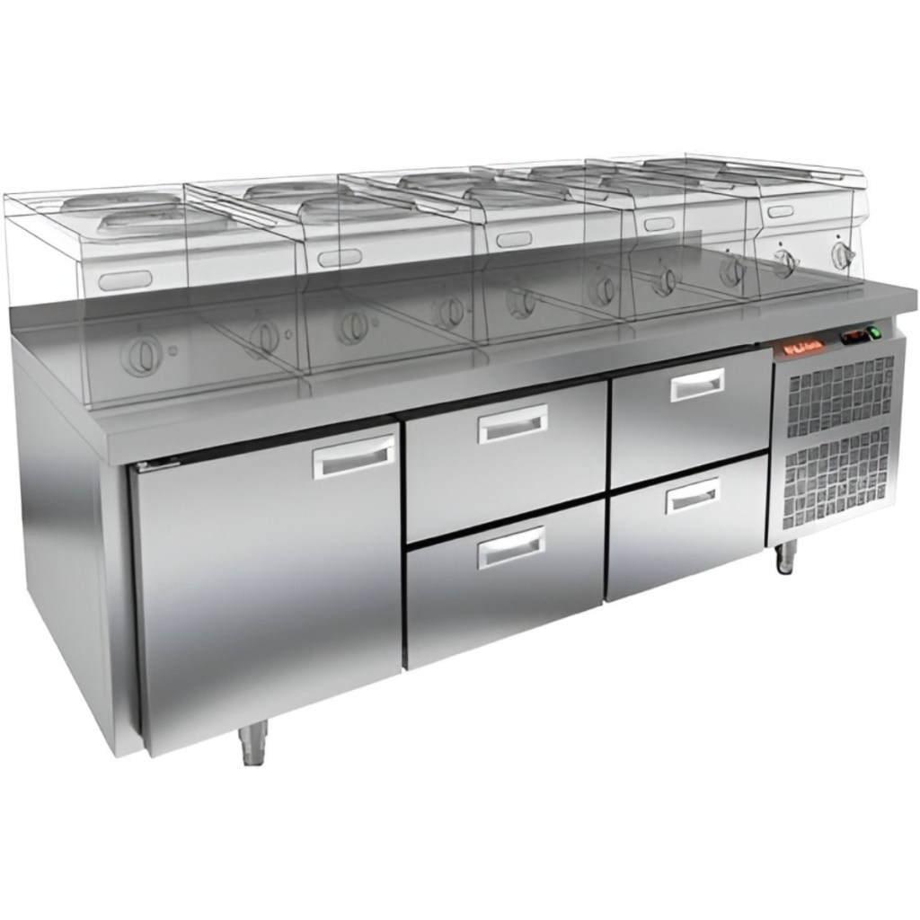 Каталог оборудования Холодильное оборудованиеСтолы охлаждаемыеСтолы холодильные под тепловое оборудованиеСтол охлаждаемый HiCold SN 122/TN LT под тепловое оборудование Стол охлаждаемый HiCold SN 122/TN LT под тепловое оборудование Код товара: 065-547 Поделиться: WhatsAppTelegram СравнитьДобавить в КПВ избранное 0 193 042 ₽ В корзину 0 шт Под заказСамовывоз сегодня бесплатно Взять в кредит Купить в лизинг Получить консультацию в WhatsApp Описание Характеристики Отзывы 0 Инструкции 2 Стол охлаждаемый HiCold SN 122/TN LT SH под тепловое оборудование предназначен для обработки ингредиентов и временного хранения скоропортящихся продуктов и напитков на предприятиях общественного питания и торговли. Устройство совмещает функции рабочей поверхности и холодильной камеры. Столешница рассчитана на установку теплового оборудования: под рабочей поверхностью встроен ДСП-лист, который укрепляет конструкцию и препятствует проникновению тепла внутрь. Такое решение обеспечивает дополнительную жесткость, позволяет рационально использовать рабочее пространство и повышает эффективность работы на кухне. Особенности: 1 распашная дверь — обеспечивает удобный доступ к внутреннему пространству. 4 выдвижных ящика — обеспечивают удобный доступ к продуктам и инвентарю Автоматические доводчики дверей с фиксатором открытого положения повышают эргономику и способствуют сохранению холода. Легкозаменяемые магнитные уплотнители обеспечивают плотное прилегание дверей и лёгкость в обслуживании. Открытая агрегатная часть упрощает доступ к компрессору при техническом обслуживании. Регулируемые по высоте низкие ножки — удобная установка и устойчивость стола даже на неровной поверхности. Толщина столешницы — 50 мм обеспечивает прочность рабочей поверхности. Высота борта — 50 мм предотвращает падение продуктов и инвентаря. Толщина теплоизоляции — 50 мм способствует энергоэффективности и стабильному температурному режиму. HiCold SN 122/TN LT SH — это надёжное и удобное оборудование, сочетающее охлаждение и рабочее пространство. Благодаря продуманной конструкции и совместимости с гастроемкостями GN 1/1, стол станет практичным решением для кухни любого профессионального уровня.Изображение товара, представленного на фото, может отличаться от его фактического вида. Показать все Габаритные размеры1835×600×675 ммДиапазон рабочей температурыот -2 до +10 °CМатериал столешницыНержавеющая Расположение агрегатаБоковое Объём320 лТип столаС дверьми и ящиками Тип двериГлухая Количество дверей1 штКоличество ящиков4 штРазмер полки430×325 ммНапряжение220 ВМощность0,46 кВтТип охлажденияДинамический Тип оттайкиАвтоматическая СтолешницаС бортом Габариты в упаковке1935×740×970 ммВес нетто162 кгВес брутто182 кгБрендHicold Оставить отзыв Еще никто не оставил отзыв на этот товар Паспорт на HICOLD SN 122TN LT SH.pdfДекларация о соответствии.pdf Похожие товары Перейти в каталог В наличии 128 777 ₽ Стол морозильный Cooleq GN3200BT с бортом Под заказ 166 404 ₽ Стол морозильный Abat СХН-70-02 без борта (дверь, дверь, дверь) С этим товаром покупают В наличии 140 675 ₽ Шкаф холодильный универсальный Polair CV 110-S Под заказ 76 010 ₽ Газовый лавовый гриль Abat ГЛК-40Н Ранее просмотрено Под заказ Цена по запросу Компрессорно-конденсаторный блок Intercold CCB335 ZFD18 EVI ZN