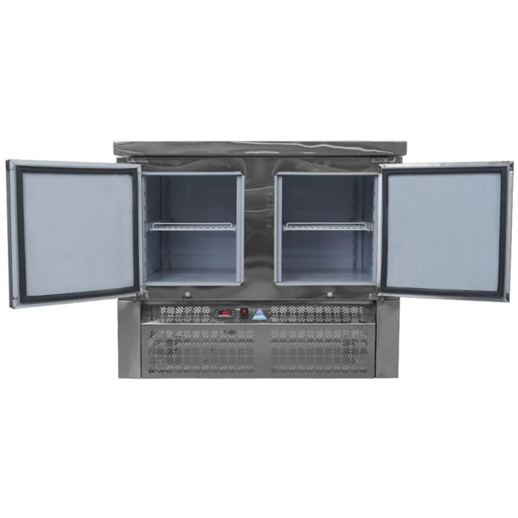 Каталог оборудования Холодильное оборудованиеСтолы охлаждаемыеСтолы морозильные низкотемпературныеСтол морозильный Ангара СХН 1,0-700 Стол морозильный Ангара СХН 1,0-700 Код товара: 066-360 Поделиться: WhatsAppTelegram СравнитьДобавить в КПВ избранное 0 125 788 ₽ В корзину 0 шт Под заказСамовывоз сегодня бесплатно Взять в кредит Купить в лизинг Получить консультацию в WhatsApp Описание Характеристики Отзывы 0 Стол морозильный Ангара СХН 1,0-700 предназначен для заморозки и хранения продуктов на предприятиях общественного питания и торговли. Модель сочетает функциональность, надёжность и удобство эксплуатации, обеспечивая эффективную работу даже при интенсивной загрузке. Компактная конструкция позволяет рационально использовать рабочее пространство кухни. Особенности модели: Нижнее расположение агрегата — обеспечивает лучшую эргономику, удобство обслуживания и равномерное распределение холода. Электронная панель управления — обеспечивает точный контроль и стабильную работу морозильной системы. Прочный корпус и столешница из нержавеющей стали — гарантируют долговечность, устойчивость к влаге и механическим воздействиям. Две дверцы и две полки размером 530×325 мм — позволяют удобно организовать внутреннее пространство и обеспечить быстрый доступ к замороженным продуктам. Регулируемые ножки — дают возможность адаптировать высоту стола под особенности рабочего места. Автоматические доводчики дверей с фиксацией — обеспечивают комфорт при работе и надёжное закрытие. Съёмные магнитные уплотнители — упрощают чистку и замену, сохраняя герметичность камеры и энергоэффективность. Морозильный стол Ангара СХН 1,0-700 — это профессиональное оборудование, идеально подходящее для предприятий общественного питания, где требуется надёжное хранение замороженных продуктов. Благодаря прочной конструкции, современному управлению и продуманной эргономике модель обеспечивает стабильную работу и удобство в ежедневной эксплуатации. Изображение товара, представленного на фото, может отличаться от его фактического вида. Показать все Габаритные размеры1000×700×850 ммДиапазон рабочей температурыот -18 до -10 °CРасположение агрегатаНижнее Материал столешницыНержавеющая Тип столаС дверьми Тип двериГлухая Объём245 лКоличество дверей2 штКоличество полок2 штРазмер полки530×325 ммНапряжение220 ВМощность0,22 кВтТип охлажденияДинамическое Тип оттайкиАвтоматическая СтолешницаС бортом БрендАнгараВсе морозильные столы с бортом Оставить отзыв Еще никто не оставил отзыв на этот товар Ранее просмотрено В наличии 96 290 ₽ Моноблок холодильный среднетемпературный Polair MM218R В наличии 48 813 ₽ Витрина холодильная настольная TEFCOLD UPD60 GREY Под заказ 906 428 ₽ Моноблок холодильный низкотемпературный Ариада ALS 335 T Под заказ 137 588 ₽ Стол морозильный Ангара СХБ 1,390-600 68 816 ₽ Льдогенератор кубикового льда ICE TECH Cubic Spray SK35A