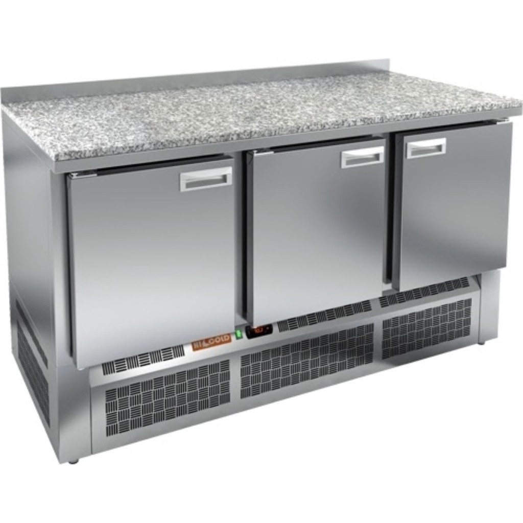 Каталог оборудования Холодильное оборудованиеСтолы охлаждаемыеСтолы морозильные низкотемпературныеСтол морозильный HiCold GNE 111/BT камень Стол морозильный HiCold GNE 111/BT камень Код товара: 065-077 Поделиться: WhatsAppTelegram СравнитьДобавить в КПВ избранное 0 192 898 ₽ В корзину 0 шт Под заказСамовывоз сегодня бесплатно Взять в кредит Купить в лизинг Получить консультацию в WhatsApp Описание Характеристики Отзывы 0 Инструкции 2 Стол морозильный HiCold GNE 111/BT камень сочетает в себе рабочую поверхность для раскатки теста и подготовки ингредиентов с камерой для заморозки и хранения продуктов и полуфабрикатов. Оборудование предназначено для использования на предприятиях общественного питания, обеспечивая надежность и удобство в работе. Преимущества: Полки, направляющие и стойки выполнены по стандарту GN, что гарантирует совместимость с профессиональным кухонным оборудованием. Прочный цельнозалитой корпус из нержавеющей стали с 50 мм изоляцией обеспечивает герметичность и жесткость конструкции. Гранитная рабочая поверхность — прочная, износостойкая и удобная для повседневной работы. Надёжный электронный блок управления с несколькими режимами оттаивания для стабильной работы. Вентилятор повышенной мощности и принудительная вентиляция обеспечивают равномерное и быстрое охлаждение по всему объёму стола. Интеллектуальная система размораживания предотвращает образование наледи и повышает энергоэффективность. Термическое выпаривание конденсата исключает скопление влаги и образование льда. Современный экономичный компрессор снижает энергозатраты. Облегчённый доступ к агрегатам упрощает обслуживание и ремонт. Двери оснащены доводчиками для плавного и герметичного закрытия. Проволочный электронагреватель (ПЭН) по контуру предотвращает примерзание дверей. Полка выдерживает нагрузку до 50 кг, а 50-мм бортик предотвращает смещение продуктов. Оптимальная работа при температуре окружающей среды от 12 до 32 °C. HiCold GNE 111/BT камень — универсальный и надёжный морозильный стол для профессиональных кухонь, который сочетает в себе прочную конструкцию, современные технологии охлаждения и удобство эксплуатации, обеспечивая эффективное хранение и удобную подготовку продуктов.Изображение товара, представленного на фото, может отличаться от его фактического вида. Показать все Габаритные размеры1485×700×850 ммДиапазон рабочей температурыот -18 до -10 °CРасположение агрегатаНижнее Материал столешницыГранитная Тип столаС дверьми Тип двериГлухая Объём340 лКоличество дверей3 штКоличество полок3 штРазмер полки530×325 ммНапряжение220 ВМощность0,57 кВтТип охлажденияДинамический Тип оттайкиАвтоматическая СтолешницаС бортом Вес нетто152 кгВес брутто172 кгБрендHicoldВсе морозильные столы HicoldВсе морозильные столы с бортом Оставить отзыв Еще никто не оставил отзыв на этот товар Паспорт на HICOLD GNE 111BT.pdfДекларация о соответствии.pdf Ранее просмотрено В наличии 41 531 ₽ Охладитель бокалов HURAKAN HKN-GF1000