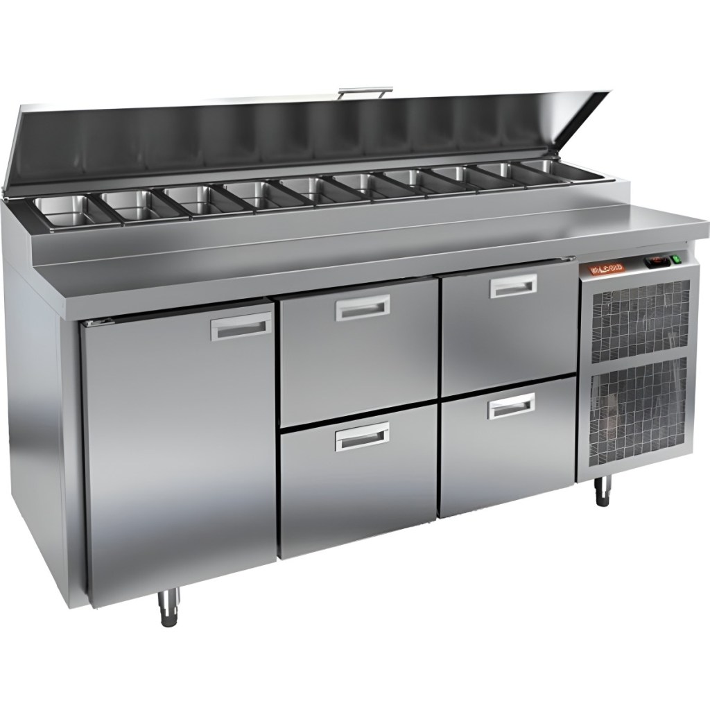 Каталог оборудования Холодильное оборудованиеСтолы охлаждаемыеСтолы холодильные для пиццыСтол холодильный для пиццы HiCold PZ1-122N (1/3) Стол холодильный для пиццы HiCold PZ1-122N (1/3) Код товара: 064-709 Поделиться: WhatsAppTelegram СравнитьДобавить в КПВ избранное 0 275 572 ₽ В корзину 0 шт Под заказСамовывоз сегодня бесплатно Взять в кредит Купить в лизинг Получить консультацию в WhatsApp Описание Характеристики Отзывы 0 Стол холодильный для пиццы HiCold PZ1-122GN (1/3) — профессиональное оборудование для предприятий общественного питания и торговли. Он сочетает рабочую поверхность для раскатки теста и подготовки ингредиентов с охлаждаемым блоком для кратковременного хранения скоропортящихся продуктов и напитков. Такое решение обеспечивает максимальное удобство — все необходимые компоненты всегда находятся под рукой. Корпус и столешница выполнены из нержавеющей стали, что гарантирует долговечность, устойчивость к повреждениям и лёгкость ухода. Основные особенности: Нержавеющая столешница и корпус — прочность, гигиеничность и лёгкость очистки Динамическая система охлаждения — равномерное распределение холода Автоматическая оттайка — стабильная работа без образования наледи Электронная панель управления — точная настройка температуры 1 дверца и 4 выдвижных ящика — удобная организация внутреннего пространства Автоматические доводчики дверцы и ящиков — комфорт при работе Легкозаменяемые магнитные уплотнители — поддержание герметичности Открытая агрегатная часть — лёгкий доступ для обслуживания Регулируемые по высоте ножки — установка на неровных поверхностях Максимальная глубина гастроёмкостей: 100 мм Глубина рабочей поверхности: 324 мм Толщина столешницы и теплоизоляции: 50 мм Вместимость салат-бара: до 10 гастроёмкостей Стол холодильный HiCold PZ1-122GN (1/3) — надёжный и функциональный холодильный стол для пиццы и салатов. Продуманная организация хранения и удобство эксплуатации обеспечивают быстрый доступ к ингредиентам и высокую производительность на профессиональной кухне.Изображение товара, представленного на фото, может отличаться от его фактического вида. Показать все Габаритные размеры1835×700×1000 ммДиапазон рабочей температурыот +2 до +10 °CРасположение агрегатаБоковое Материал столешницыНержавеющая Тип столаС дверьми и ящиками Тип двериГлухая Объём505 лТип гастроемкостейGN 1/3 Количество дверей1 штКоличество ящиков4 штРазмер полки530×325 ммНапряжение220 ВМощность0,5 кВтТип охлажденияДинамическое Тип оттайкиАвтоматическая Габариты в упаковке2000×850×1140 ммВес нетто172 кгВес брутто200 кгБрендHicoldВсе холодильные столы для пиццы HicoldВсе нержавеющие холодильные столы для пиццы Оставить отзыв Еще никто не оставил отзыв на этот товар Ранее просмотрено Под заказ 306 171 ₽ Стол холодильный для пиццы HiCold PZ1-222GN (1/3H) Под заказ 273 142 ₽ Стол холодильный для пиццы HiCold PZ1-1111GN (1/3) M