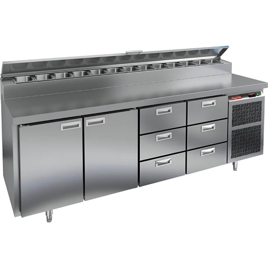 Каталог оборудования Холодильное оборудованиеСтолы охлаждаемыеСтолы холодильные для пиццыСтол холодильный для пиццы HiCold PZ2-1133GN (1/6) Стол холодильный для пиццы HiCold PZ2-1133GN (1/6) Код товара: 064-759 Поделиться: WhatsAppTelegram СравнитьДобавить в КПВ избранное 0 342 442 ₽ В корзину 0 шт Под заказСамовывоз сегодня бесплатно Взять в кредит Купить в лизинг Получить консультацию в WhatsApp Описание Характеристики Отзывы 0 Стол холодильный для пиццы HiCold PZ2-1133GN (1/6) предназначен для кухонь и предприятий общественного питания. Он используется для раскатки теста, подготовки ингредиентов для пиццы, салатов и других блюд, а также для охлаждения и кратковременного хранения скоропортящихся продуктов. Модель совмещает нержавеющую рабочую поверхность и охлаждаемый отсек с 2 дверьми и 6 ящиками, обеспечивая удобный доступ к ингредиентам и эффективное хранение. Особенности: Динамическая система охлаждения для равномерного поддержания температуры Автоматическая оттайка для удобного обслуживания Электронная панель управления для точной настройки параметров Вместительная внутренняя полка формата GN 1/1 (размер 530×325 мм) 2 двери и 6 вместительных ящика для хранения ингредиентов Автоматические доводчики дверей с фиксатором открытого положения Легкозаменяемые магнитные уплотнители для герметичности Открытая агрегатная часть для легкого доступа к компонентам Регулируемые по высоте ножки для устойчивости Нержавеющая столешница глубиной 486 мм и толщиной 50 мм — устойчива к коррозии, легко моется и гигиенична Толщина теплоизоляции: 50 мм Максимальная глубина гастроемкостей: 100 мм Вместимость салат-бара: 13 гастроемкости Стол холодильный HiCold PZ2-1133GN (1/6) — это надежный и функциональный стол для пиццы. Он объединяет рабочую поверхность и охлаждаемый отсек, упрощает хранение и подготовку ингредиентов, обеспечивает удобство работы повара и соответствует стандартам профессиональной кухни. Изображение товара, представленного на фото, может отличаться от его фактического вида. Показать все Габаритные размеры2280×700×1000 ммДиапазон рабочей температурыот +2 до +10 °CРасположение агрегатаБоковое Материал столешницыНержавеющая Тип столаС дверьми и ящиками Тип двериГлухая Объём660 лТип гастроемкостейGN 1/6 Количество дверей2 штКоличество ящиков6 штРазмер полки530×325 ммНапряжение220 ВМощность0,5 кВтТип охлажденияДинамическое Тип оттайкиАвтоматическая Габариты в упаковке2420×850×1080 ммВес нетто208 кгВес брутто240 кгБрендHicoldВсе холодильные столы для пиццы HicoldВсе нержавеющие холодильные столы для пиццы Оставить отзыв Еще никто не оставил отзыв на этот товар Ранее просмотрено Под заказ 250 642 ₽ Стол холодильный для пиццы HiCold PZ1-1111GN (1/3) Под заказ 209 062 ₽ Стол холодильный для пиццы HiCold PZE1-111GN (1/3) М