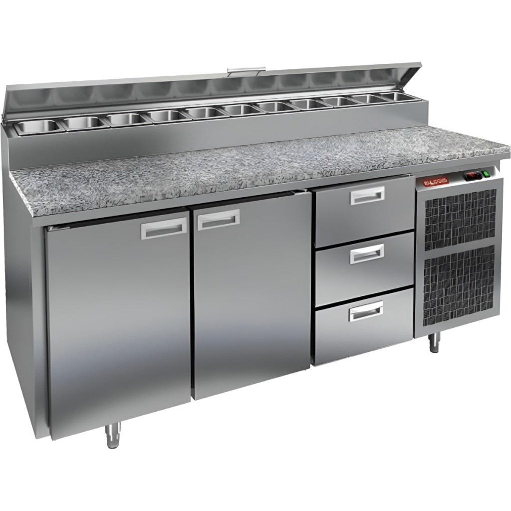 Каталог оборудования Холодильное оборудованиеСтолы охлаждаемыеСтолы холодильные для пиццыСтол холодильный для пиццы HiCold PZ2-113GN (1/6) камень Стол холодильный для пиццы HiCold PZ2-113GN (1/6) камень Код товара: 064-762 Поделиться: WhatsAppTelegram СравнитьДобавить в КПВ избранное 0 292 761 ₽ В корзину 0 шт Под заказСамовывоз сегодня бесплатно Взять в кредит Купить в лизинг Получить консультацию в Max Описание Характеристики Отзывы 0 Инструкции 2 Стол холодильный для пиццы HiCold PZ2-113/GN (1/6) камень предназначен для кухонь и предприятий общественного питания. Он используется для раскатки теста, подготовки ингредиентов для пиццы, салатов и других блюд, а также для охлаждения и кратковременного хранения скоропортящихся продуктов. Модель совмещает гранитную рабочую поверхность и охлаждаемый отсек с 2 дверьми и 3 ящиками, обеспечивая удобный доступ к ингредиентам и эффективное хранение. Особенности: Динамическая система охлаждения для равномерного поддержания температуры Автоматическая оттайка для удобного обслуживания Электронная панель управления для точной настройки параметров Вместительная внутренняя полка формата GN 1/1 (размер 530×325 мм) 2 двери и 3 вместительных ящика для хранения ингредиентов Автоматические доводчики дверей с фиксатором открытого положения Легкозаменяемые магнитные уплотнители для герметичности Открытая агрегатная часть для легкого доступа к компонентам Регулируемые по высоте ножки для устойчивости Гранитная рабочая поверхность глубиной 486 мм и толщиной 50 мм — устойчива к повреждениям, высоким температурам и царапинам Толщина теплоизоляции: 50 мм Максимальная глубина гастроемкостей: 100 мм Вместимость салат-бара: 11 гастроемкости Стол холодильный HiCold PZ2-113/GN (1/6) камень — это надёжный и функциональный стол для пиццы. Он сочетает рабочую поверхность и охлаждаемый отсек, облегчает хранение и подготовку ингредиентов, повышает удобство работы повара и соответствует стандартам профессиональной кухни.Изображение товара, представленного на фото, может отличаться от его фактического вида. Показать все Габаритные размеры1835×700×1000 ммДиапазон рабочей температурыот +2 до +10 °CРасположение агрегатаБоковое Материал столешницыГранитная Тип столаС дверьми и ящиками Тип двериГлухая Объём505 лТип гастроемкостейGN 1/6 Количество дверей2 штКоличество ящиков3 штРазмер полки530×325 ммНапряжение220 ВМощность0,5 кВтТип охлажденияДинамическое Тип оттайкиАвтоматическая Габариты в упаковке2000×850×1140 ммВес нетто172 кгВес брутто248 кгБрендHicoldВсе холодильные столы для пиццы Hicold Оставить отзыв Еще никто не оставил отзыв на этот товар Паспорт на HICOLD PZ2-113/GN.pdfДекларация о соответствии.pdf Ранее просмотрено Под заказ 132 652 ₽ Стол холодильный среднетемпературный HiCold GNG 11 HT без столешницы Под заказ 290 061 ₽ Стол холодильный для пиццы HiCold PZ1-1111GN (1/3) камень