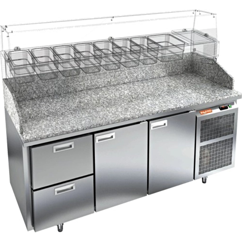 Каталог оборудования Холодильное оборудованиеСтолы охлаждаемыеСтолы холодильные для пиццыСтол холодильный для пиццы HiCold PZ3-211/GN камень Стол холодильный для пиццы HiCold PZ3-211/GN камень Код товара: 065-010 Поделиться: WhatsAppTelegram СравнитьДобавить в КПВ избранное 0 297 352 ₽ В корзину 0 шт Под заказСамовывоз сегодня бесплатно Взять в кредит Купить в лизинг Получить консультацию в WhatsApp Описание Характеристики Отзывы 0 Стол холодильный для пиццы HiCold PZE3-211/GN камень предназначен для использования в пиццериях, кафе, магазинах и ресторанах. Он идеально подходит для раскатки теста, подготовки ингредиентов и кратковременного хранения скоропортящихся продуктов. Витрина приобретается отдельно. Стол сочетает корпус из нержавеющей стали и гранитную столешницу, которая устойчива к механическим и температурным нагрузкам и удобна в работе с тестом. Такая конструкция обеспечивает долговечность, гигиеничность и простоту ухода. Особенности модели: Охлаждение: динамическое — равномерное поддержание температуры Оттайка: автоматическая — удобство и экономия времени Панель управления: электронная — точная настройка температуры Ножки: регулируемые по высоте — устойчивость на неровной поверхности Двери: 2 глухие двери с автоматическими доводчиками и фиксатором открытого положения Ящики: 2 выдвижных ящика — удобное хранение ингредиентов Уплотнители: легкозаменяемые магнитные — герметичность и простота обслуживания Толщина теплоизоляции: 50 мм — сохранение холода и энергоэффективность Рабочая поверхность: глубина 680 мм — удобство работы HiCold PZE3-211/GN камень— это надёжный и функциональный холодильный стол для пиццы, который сочетает прочность, эргономику и эффективное охлаждение. Благодаря гранитной столешнице, корпусу из нержавеющей стали, двум глухим дверям и двум выдвижным ящикам он станет универсальным решением для профессиональной кухни. Изображение товара, представленного на фото, может отличаться от его фактического вида. Показать все Габаритные размеры1835×700×1050 ммДиапазон рабочей температурыот +2 до +10 °CРасположение агрегатаБоковое Материал столешницыГранитная Тип столаС дверьми и ящиками Тип двериГлухая Объём505 лКоличество дверей2 штКоличество ящиков2 штРазмер полки530×325 ммНапряжение220 ВМощность0,5 кВтТип охлажденияДинамическое Тип оттайкиАвтоматическая Габариты в упаковке2000×850×1180 ммВес нетто172 кгВес брутто192 кгБрендHicoldВсе холодильные столы для пиццы HicoldВсе нержавеющие холодильные столы для пиццы Оставить отзыв Еще никто не оставил отзыв на этот товар Ранее просмотрено Под заказ 327 952 ₽ Стол холодильный для пиццы HiCold PZ3-122/GN камень Под заказ 257 662 ₽ Стол холодильный для пиццы HiCold PZ2-1111GN (1/6) З Под заказ 222 472 ₽ Стол холодильный для пиццы HiCold PZ3-11/SN 3 камень Под заказ 207 801 ₽ Стол холодильный для пиццы HiCold PZE1-111GN (1/3) камень