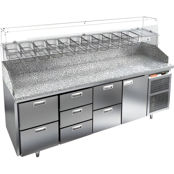 Каталог оборудования Холодильное оборудованиеСтолы охлаждаемыеСтолы холодильные для пиццыСтол холодильный для пиццы HiCold PZ3-2321/GN камень Стол холодильный для пиццы HiCold PZ3-2321/GN камень Код товара: 065-015 Поделиться: WhatsAppTelegram СравнитьДобавить в КПВ избранное 0 391 221 ₽ В корзину 0 шт Под заказСамовывоз сегодня бесплатно Взять в кредит Купить в лизинг Получить консультацию в WhatsApp Описание Характеристики Отзывы 0 Стол холодильный для пиццы HiCold PZ3-2321/GN камень предназначен для использования в пиццериях, кафе, магазинах и ресторанах. Он идеально подходит для раскатки теста, подготовки ингредиентов и кратковременного хранения скоропортящихся продуктов. Витрина приобретается отдельно. Стол сочетает корпус из нержавеющей стали и гранитную столешницу, которая устойчива к механическим и температурным нагрузкам и удобна в работе с тестом. Такая конструкция обеспечивает долговечность, гигиеничность и простоту ухода. Особенности модели: Охлаждение: динамическое — равномерное поддержание температуры Оттайка: автоматическая — удобство и экономия времени Панель управления: электронная — точная настройка температуры Ножки: регулируемые по высоте — устойчивость на неровной поверхности Двери: 1 глухая дверца с автоматическими доводчиками и фиксатором открытого положения Ящики: 7 выдвижных ящика — удобное хранение ингредиентов Уплотнители: легкозаменяемые магнитные — герметичность и простота обслуживания Толщина теплоизоляции: 50 мм — сохранение холода и энергоэффективность Рабочая поверхность: глубина 680 мм — удобство работы HiCold PZ3-2321/GN камень — это надёжный и функциональный холодильный стол для пиццы, который сочетает прочность, эргономику и эффективное охлаждение. Благодаря гранитной столешнице, корпусу из нержавеющей стали, двум глухим дверям и двум выдвижным ящикам он станет универсальным решением для профессиональной кухни. Изображение товара, представленного на фото, может отличаться от его фактического вида. Показать все Габаритные размеры2280×700×1050 ммДиапазон рабочей температурыот +2 до +10 °CРасположение агрегатаБоковое Материал столешницыГранитная Тип столаС дверьми и ящиками Тип двериГлухая Объём660 лКоличество дверей1 штКоличество ящиков7 штРазмер полки530×325 ммНапряжение220 ВМощность0,5 кВтТип охлажденияДинамическое Тип оттайкиАвтоматическая Габариты в упаковке2430×850×1140 ммВес нетто270 кгВес брутто320 кгБрендHicoldВсе холодильные столы для пиццы HicoldВсе нержавеющие холодильные столы для пиццы Оставить отзыв Еще никто не оставил отзыв на этот товар Ранее просмотрено Под заказ 231 562 ₽ Стол холодильный для пиццы HiCold PZE1-1111GN (1/3) стекло Под заказ 108 206 ₽ Витрина холодильная Ангара 1 КУБ 1,8 динамика Под заказ 247 671 ₽ Стол холодильный для пиццы HiCold PZE1-1111GN (1/3) камень
