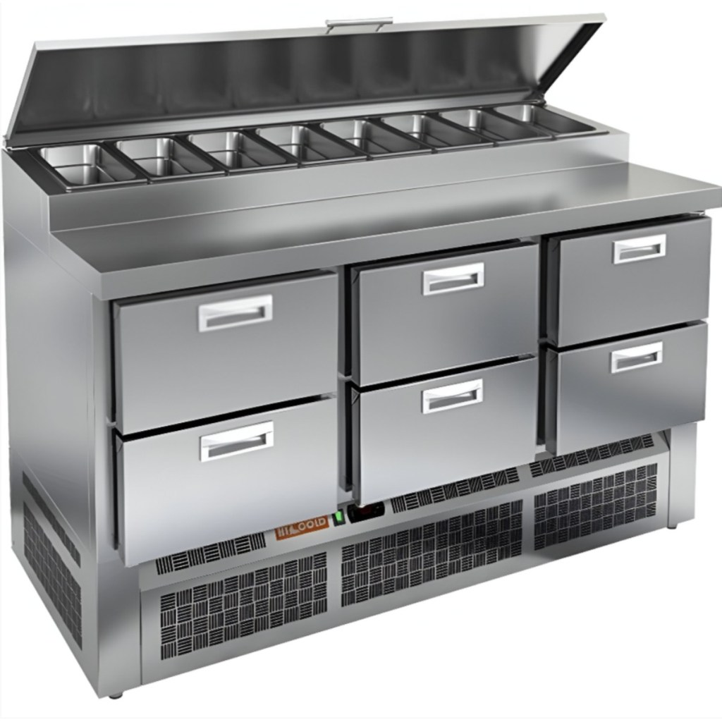 Каталог оборудования Холодильное оборудованиеСтолы охлаждаемыеСтолы холодильные для пиццыСтол холодильный для пиццы HiCold PZE1-222GN (1/3) Стол холодильный для пиццы HiCold PZE1-222GN (1/3) Код товара: 064-727 Поделиться: WhatsAppTelegram СравнитьДобавить в КПВ избранное 0 278 361 ₽ В корзину 0 шт Под заказСамовывоз сегодня бесплатно Взять в кредит Купить в лизинг Получить консультацию в WhatsApp Описание Характеристики Отзывы 0 Стол холодильный для пиццы HiCold PZE1-222GN (1/3) — профессиональное оборудование для предприятий общественного питания и торговли. Он предназначен для раскатки теста и подготовки ингредиентов, используемых при приготовлении пиццы, салатов и других блюд, а также для охлаждения и кратковременного хранения скоропортящихся продуктов и напитков. Совмещение рабочей поверхности и охлаждаемого блока значительно упрощает работу повара — все необходимые компоненты находятся под рукой. Корпус и столешница выполнены из нержавеющей стали, обеспечивая долговечность, устойчивость к повреждениям и лёгкость ухода. Основные особенности: Динамическая система охлаждения — равномерное распределение холода по всему объёму Автоматическая оттайка — стабильная работа без образования наледи Электронная панель управления — точная настройка температуры 6 выдвижных ящика — удобная организация внутреннего пространства Автоматические доводчики ящиков — комфорт при работе Легкозаменяемые магнитные уплотнители — поддержание герметичности Открытая агрегатная часть — лёгкий доступ к техническим элементам Регулируемые по высоте ножки — установка на неровных поверхностях Максимальная глубина гастроёмкостей: 100 мм Глубина рабочей поверхности: 324 мм Толщина столешницы: 50 мм Толщина теплоизоляции: 50 мм Вместимость салат-бара: до 8 гастроёмкостей HiCold PZE1-222GN (1/3) с четырьмя выдвижными ящиками — надёжный и функциональный холодильный стол для пиццы и салатов. Продуманная организация хранения и удобство эксплуатации обеспечивают быстрый доступ к ингредиентам и повышают производительность на профессиональной кухне.Изображение товара, представленного на фото, может отличаться от его фактического вида. Показать все Габаритные размеры1485×700×990 ммДиапазон рабочей температурыот +2 до +10 °CРасположение агрегатаНижнее Материал столешницыНержавеющая Тип столаС ящиками Объём375 лТип гастроемкостейGN 1/3 Количество ящиков6 штНапряжение220 ВМощность0,22 кВтТип охлажденияДинамическое Тип оттайкиАвтоматическая Габариты в упаковке1680×840×1170 ммВес нетто115 кгВес брутто153 кгБрендHicoldВсе холодильные столы для пиццы HicoldВсе нержавеющие холодильные столы для пиццы Оставить отзыв Еще никто не оставил отзыв на этот товар Ранее просмотрено Под заказ 247 761 ₽ Стол холодильный для пиццы HiCold PZE2-221/GN (1/6H) Под заказ 306 171 ₽ Стол холодильный для пиццы HiCold PZ1-222GN (1/3H)