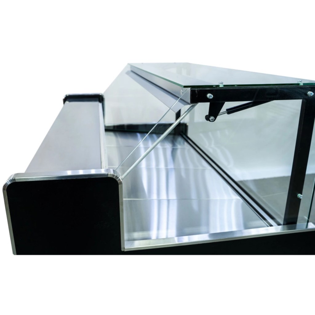 Каталог оборудования Холодильное оборудованиеВитрины холодильныеВитрины холодильные среднетемпературные от 0 до +5 °СВитрина холодильная Ангара 2 КУБ 1,5 статика Витрина холодильная Ангара 2 КУБ 1,5 статика Код товара: 066-474 Поделиться: WhatsAppTelegram СравнитьДобавить в КПВ избранное 0 78 200 ₽ В корзину 0 шт В наличииСамовывоз сегодня бесплатно Взять в кредит Купить в лизинг Получить консультацию в WhatsApp Описание Характеристики Отзывы 0 Витрина холодильная Ангара 2 КУБ 1,5 статика предназначена для демонстрации и кратковременного хранения пищевых продуктов. Обеспечивает поддержание заданной температуры предварительно охлаждённых продуктов и органично вписывается в оформление любого торгового зала или открытой площадки. Особенности: Статическое охлаждение: естественная циркуляция воздуха без вентиляторов, поддержание температуры и свежести продуктов Встроенный компрессорный холодильный агрегат Embraco Aspera или Secop (Danfoss) Надёжный микродвигатель EBM-PAPST Прямое лобовое стекло и боковые стекла толщиной 6 мм, ударопрочные Материалы: поверхность выкладки – нержавеющая сталь, подтоварники – оцинкованная сталь с полимерным покрытием, столешницы – нержавеющая сталь Два вместительных подтоварника для хранения продукции Автоматическое оттаивание испарителя с отводом талой воды в ёмкость в агрегатном отсеке Электронное управление температурой через блок Elitech ETC-974 (2 датчика, усиленное реле) Светодиодное LED-освещение – яркое, энергосберегающее, с низким тепловыделением, включается кнопкой на панели управления Автомат IEK для надёжного включения/выключения витрины Ровное расположение витрины благодаря регулируемым опорам, правильный сбор конденсата и бесшумная работа Равномерное распределение температуры по объёму камеры без образования льда и инея Конденсатор – статический Хладагент – экологичный и нетоксичный R-134a, R-404a Испаритель SEST LUVE от итальянского производителя Комплектация: 2 подтоварника / электронный блок управления Температура окружающей среды: +12…+35 °C Ангара 2 КУБ 1,5 – надёжная и вместительная витрина для демонстрации и хранения предварительно охлаждённых продуктов. Отличается равномерным охлаждением, ярким LED-освещением, автоматическим оттаиванием и прочными материалами, что делает её идеальным решением для больших торговых залов и открытых площадок.Изображение товара, представленного на фото, может отличаться от его фактического вида. Показать все Габаритные размеры1520×980×1260 ммДиапазон рабочей температурыот 0 до +5 °CПлощадь выкладки0,94 м²Длина1520 ммГлубина980 ммВысота1260 ммНоминальная мощность212 ВтРазмер выкладки654 ммПолезный объем220 лХолодообеспечениеВстроенное Тип охлажденияСтатическое Тип оттайкиАвтоматическая Температура эксплуатацииот +12 до +35 °CПодсветкаЕсть ХладагентR134a, R404a Напряжение220 ВРасход электроэнергии в сутки5,1 кВт/сутГабариты в упаковке1700×1350×1200 ммОбъём (брутто)2,75 м³Вес нетто160 кгВес брутто260 кгБрендАнгараВсе витрины холодильные среднетемпературные от 0 до +5 °С 1,8 м Оставить отзыв Еще никто не оставил отзыв на этот товар Ранее просмотрено В наличии 84 400 ₽ Витрина холодильная Ангара 2 КУБ 1,8 статика В наличии 78 000 ₽ Витрина холодильная Ангара 2 КУБ 1,0 статика, открытая