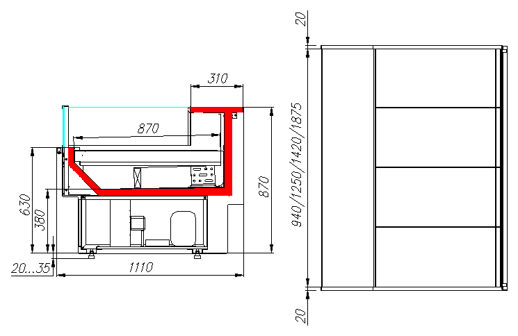 Глубина выкладки: 870 мм.