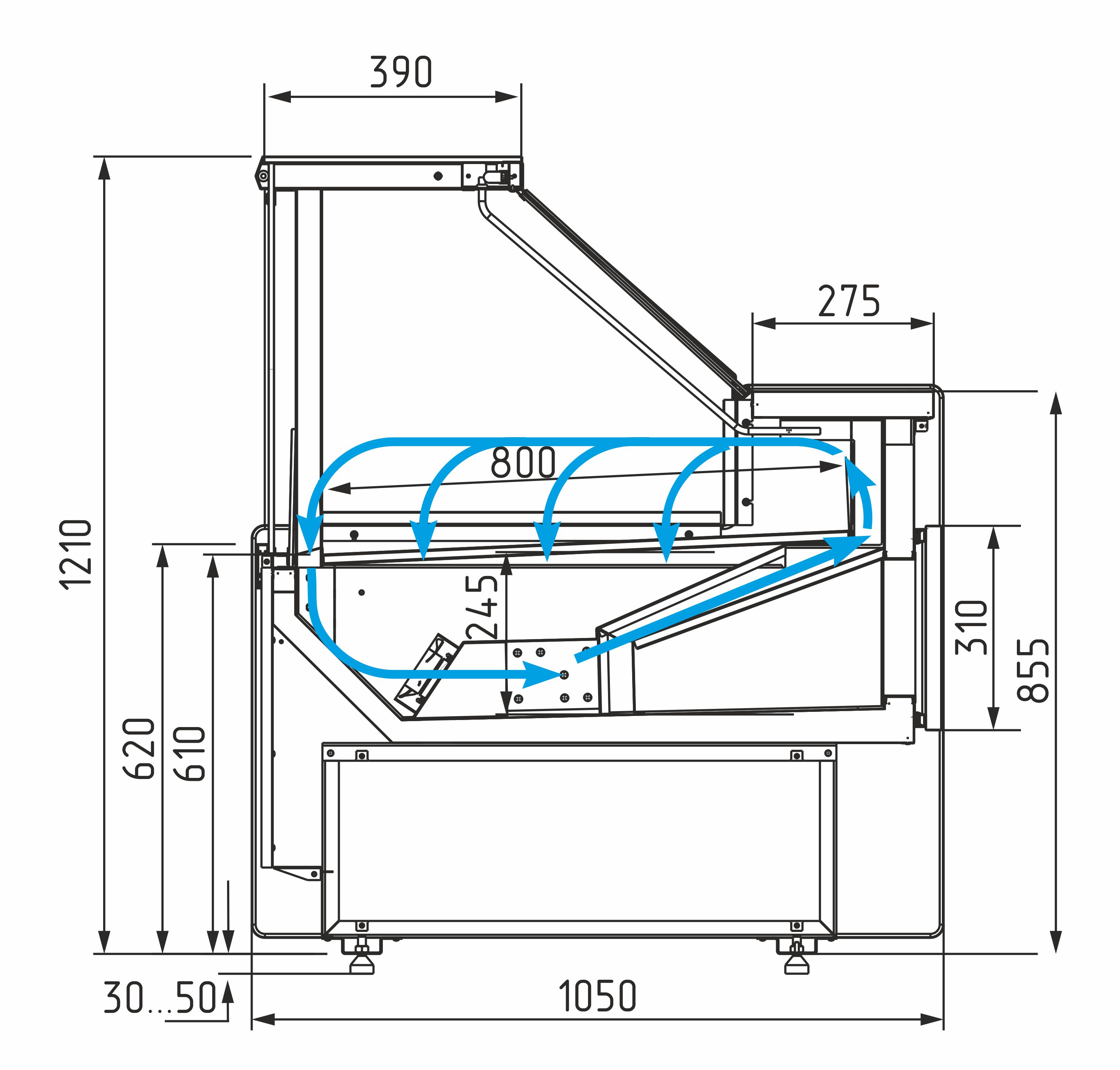 • Подъёмное фронтальное стекло с газлифтом — удобный доступ к продуктам и лёгкое обслуживание.
